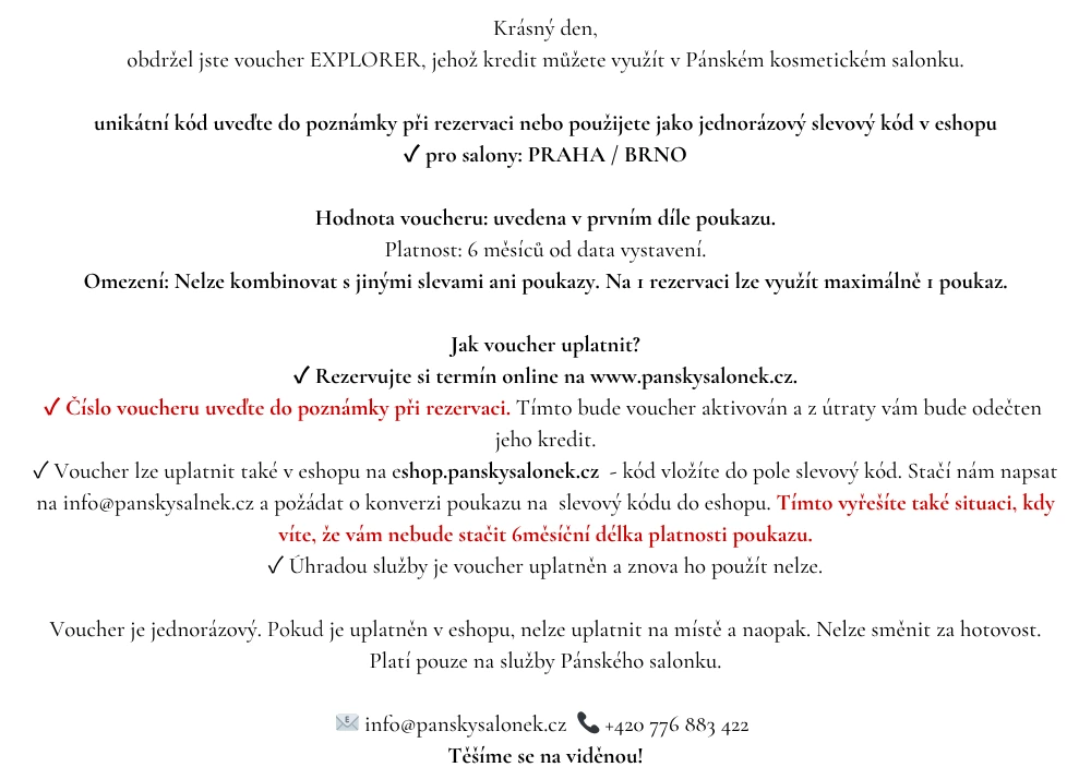 1 voucher = 1 rezervace, nelze kombinovat se slevami.